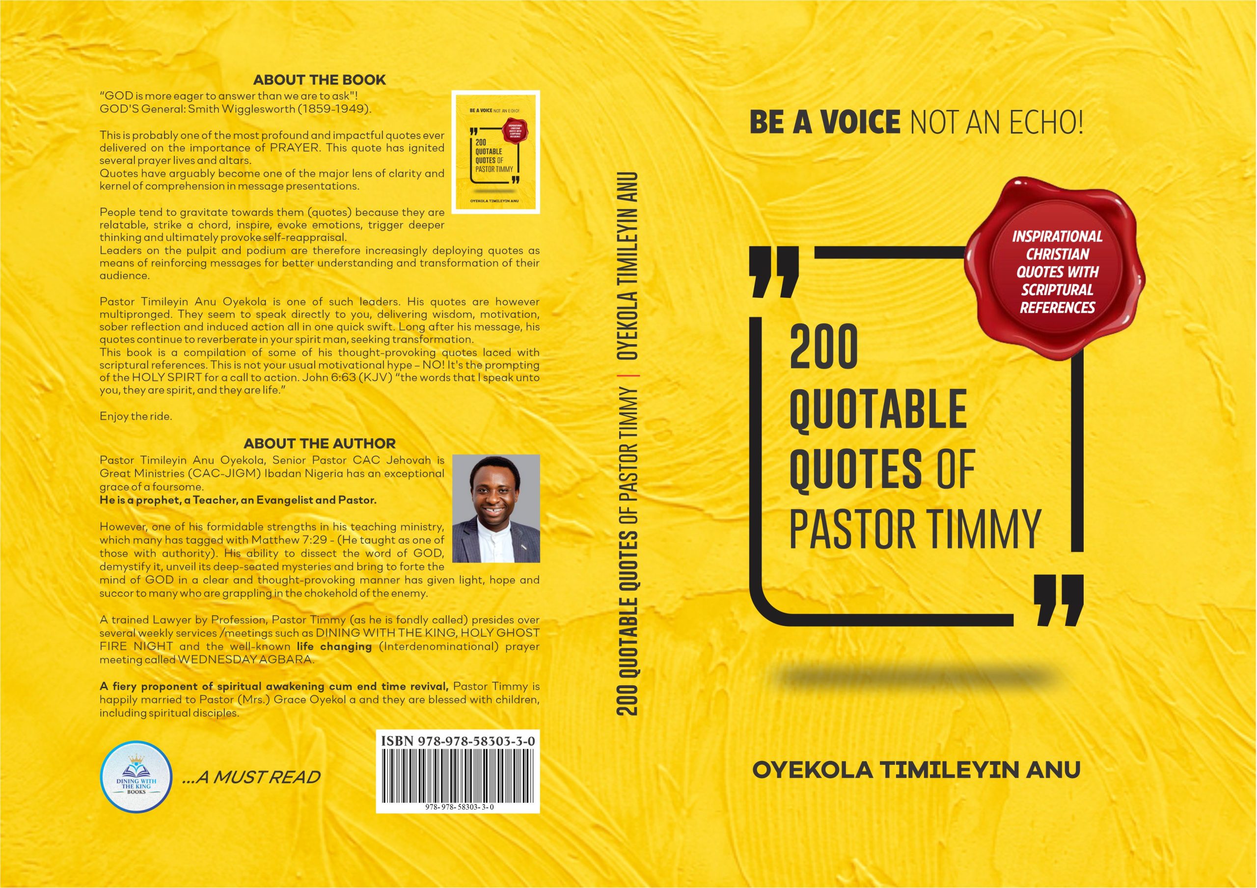 Pastor Timileyin Anu Oyekola is one of such leaders. His quotes are however multipronged. They seem to speak directly to you, delivering wisdom, motivation, sober reflection and induced action all in one quick swift. Long after his message, his quotes continue to reverberate in your spirit man, seeking transformation.